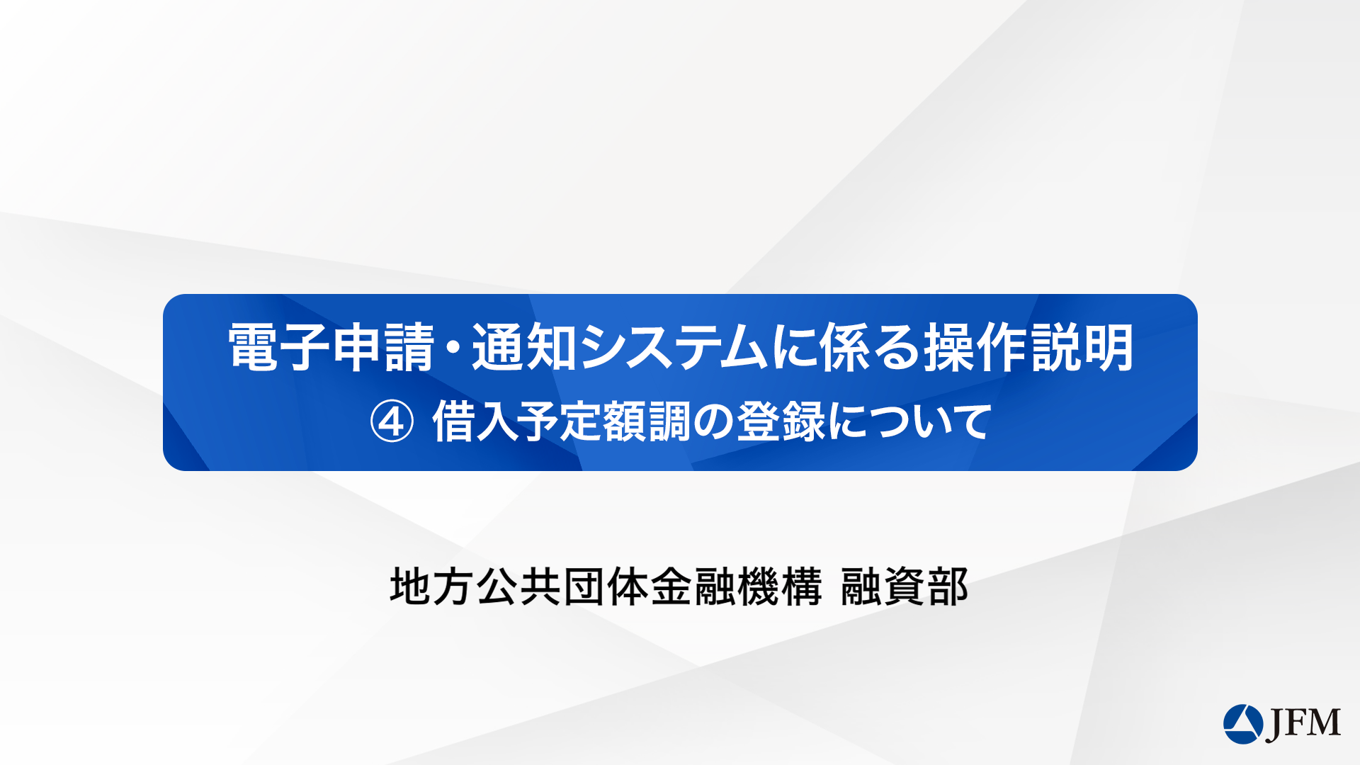 機構資金の借入をする際に必要となる、借入予定額の登録方法について説明した動画です。